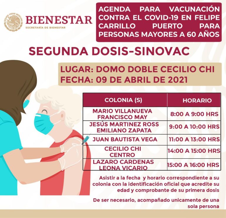 Los puestos de vacunación estarán instalados en el domo deportivo de la colonia Cecilio Chi, de 8 de la mañana a 6 de la tarde, a partir de este viernes y hasta el martes 13 de abril.
