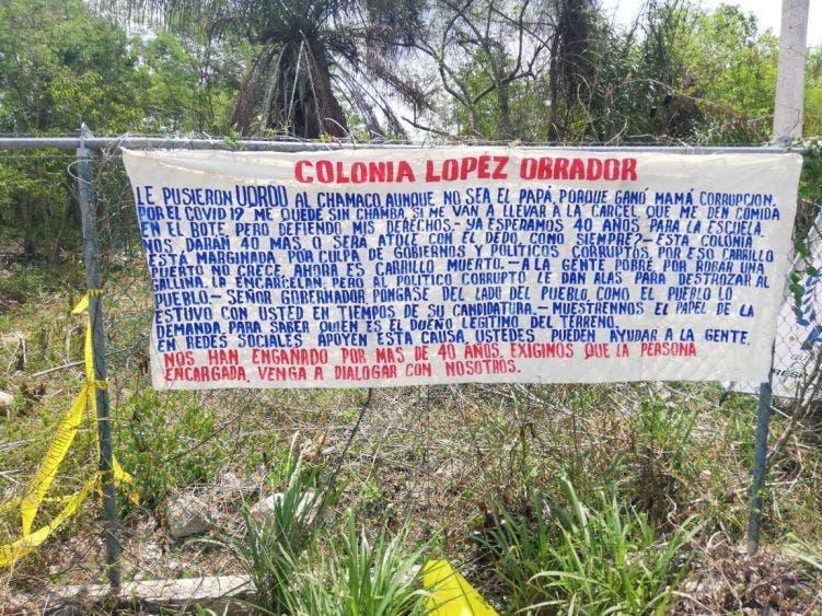 En esta ocasión colocaron un manta con la que promueven la creación de una colonia con el nombre “Andrés Manuel López Obrador”. De nueva cuenta acudieron al lugar policías ministeriales, quienes exhortaron a los invasores retirarse del lugar,puesto que de seguir estaría incurriendo en un delito.
