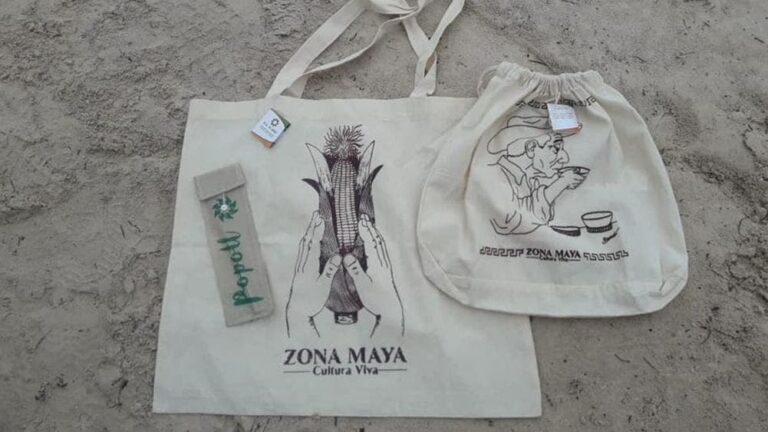 La asociación civil Ka’ Kuxtal impulsa la comercialización de costales elaborados con tela de manta y diseños artesanales que al mismo tiempo difunde las tradiciones de la cultura maya.