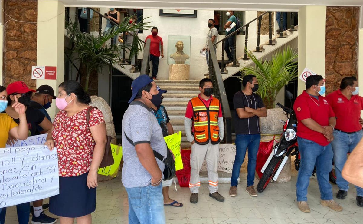 Marchan empleados de Protección Civil de Felipe Carrillo Puerto por falta de pagos