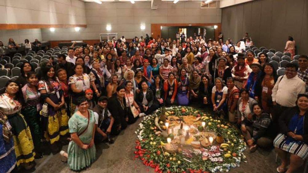 Mujeres de 23 países de América Latina, participan en este encuentro, mismo que dio inicio con un ritual intercultural de apertura de saludo a los cuatro puntos cardinales y que se realiza en la ciudad de México del 26 al 29 de febrero de 2020.