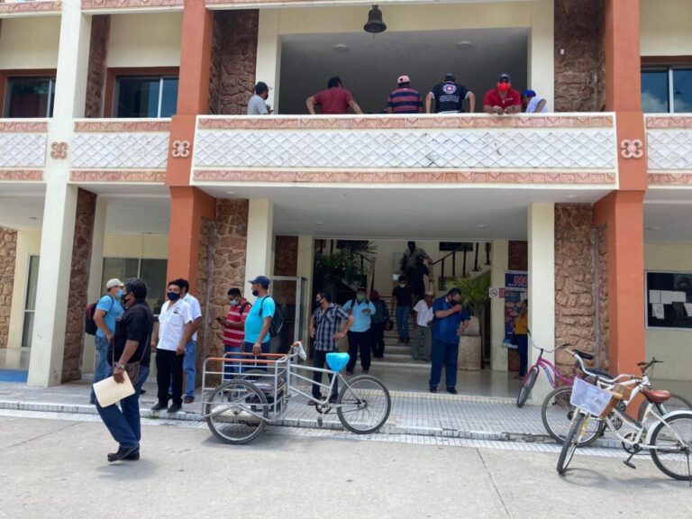 Son más de 80 autoridades comunitarias las que no han recibido el pago de sus quincenas y a más de 13 horas de espera no habían sido atendidos en el palacio municipal de Felipe Carrillo Puerto.