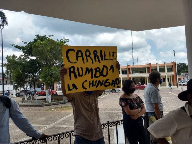 Reclaman trabajadores a alcalde de FCP falta de pago.- Un grupo de autoridades comunitarias se manifestaron ante el gobierno de José Esquivel Vargas, por la falta de pago de quincenas y compensaciones, manifestación a la que se sumaron un grupo de trabajadores eventuales y de confianza por el mismo problema.