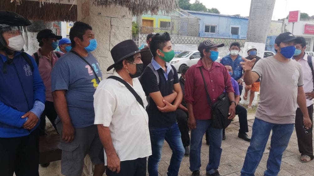 Reclaman trabajadores a alcalde de FCP falta de pago.- Un grupo de autoridades comunitarias se manifestaron ante el gobierno de José Esquivel Vargas, por la falta de pago de quincenas y compensaciones, manifestación a la que se sumaron un grupo de trabajadores eventuales y de confianza por el mismo problema.