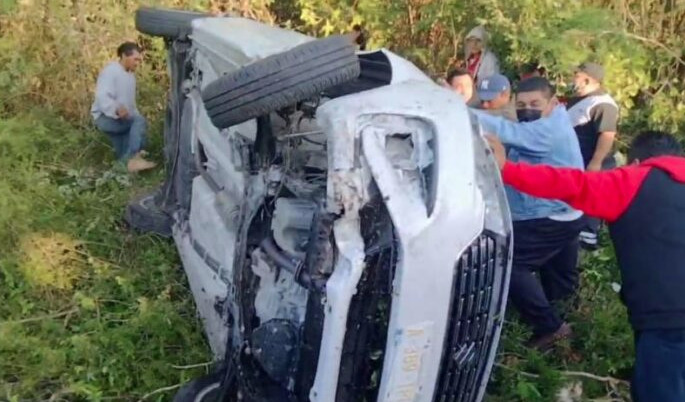 Un grupo de turistas peruanas que viajaban en una camioneta sobre el tramo 186 de la carretera Felipe Carrillo Puerto, sufrieron un aparatoso accidente cuando chocan y vuelcan su unidad, saliéndose de la carretera.