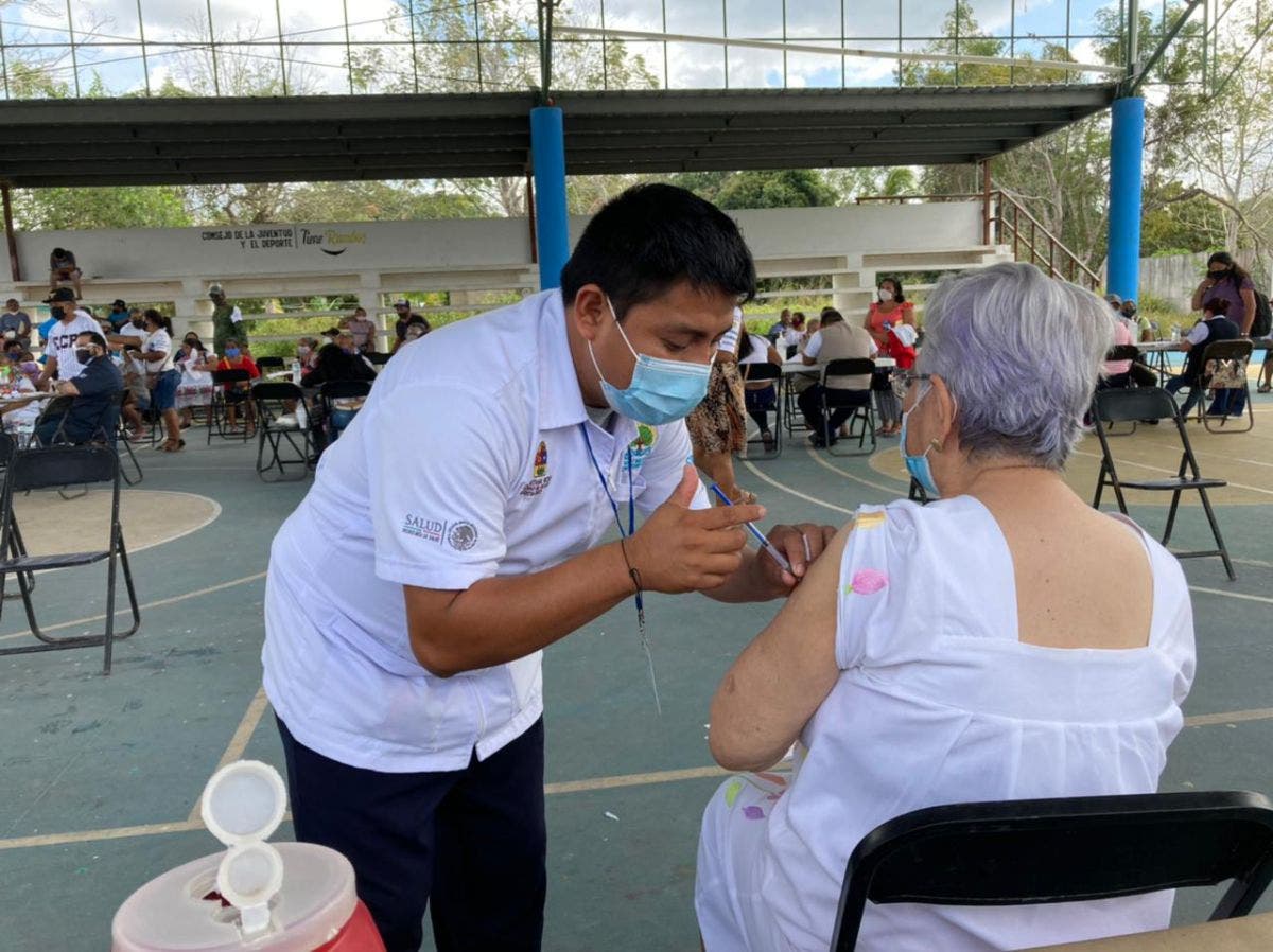 Inició la vacunación de adultos mayores contra el Covid-19 en la Zona Maya en la que se pretende este día aplicar mil 500 dosis, informó la responsable de vacunación en Felipe Carrillo Puerto, Ariane Cristel Peraza Jiménez.