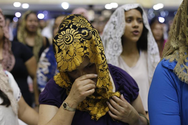 Imagen de archivo. Fieles de la Iglesia La Luz del Mundo se congregan para rezar por la liberación de su líder, Naasón Joaquín García, detenido en Estados Unidos por acusaciones de trata de personas, pornografía infantil y abuso sexual de menores.