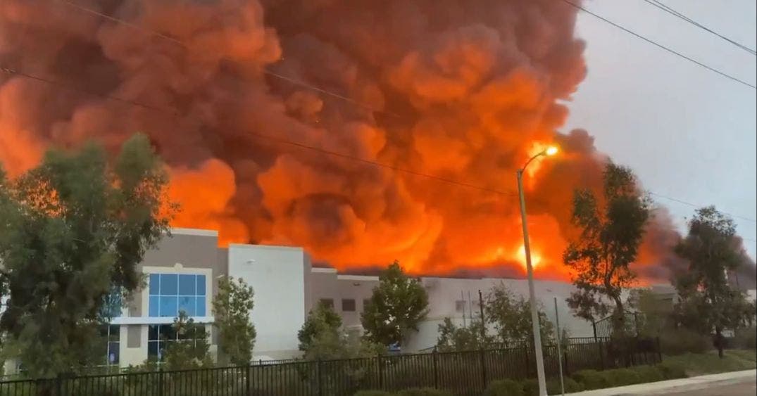 Amazon warehouse on fire check on y’all Redlands people 🗣👀 #Amazon #redlands pic.twitter.com/vuykNCDq7q
