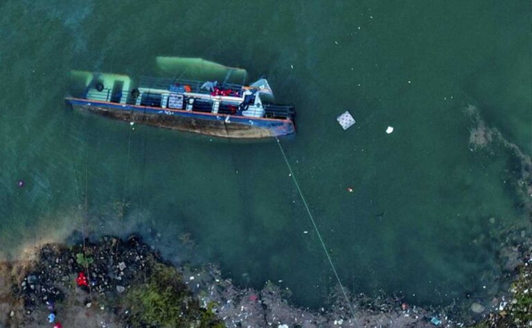 Investigaciones preliminares informaron que la embarcación fue derribada por fuertes vientos, asimismo, dijeron que el barco estaba sobrecargado cuando ocurrió el accidente.