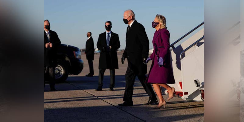 Joe Biden aterrizó en la base aérea de Andrew, cerca de Washington en víspera de la ceremonia en el asumirá la presidencia de Estados Unidos.