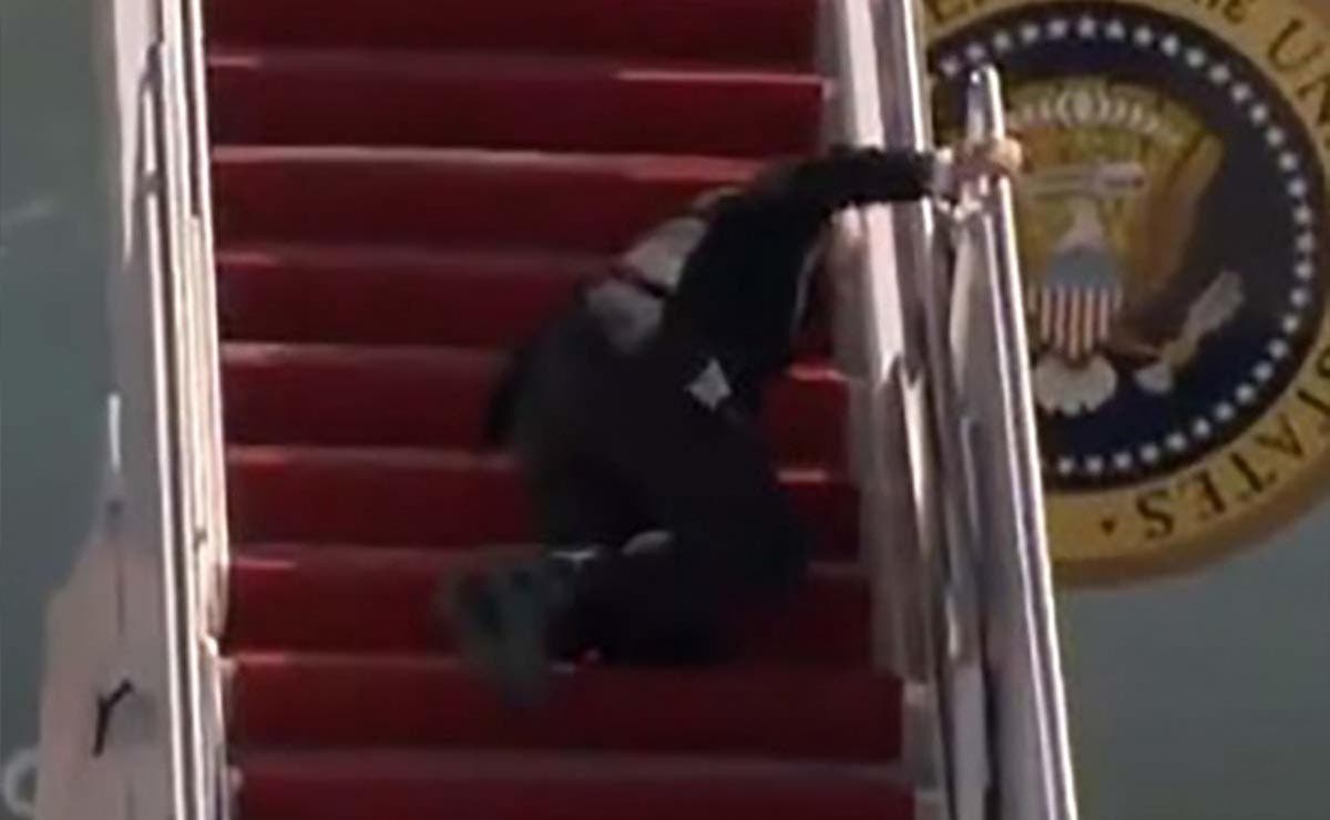 En la grabación se puede observar al presidente Biden subiendo las escaleras rojas cuando tropezó en varias ocasiones ante los camarógrafos que grababan lo sucedido.