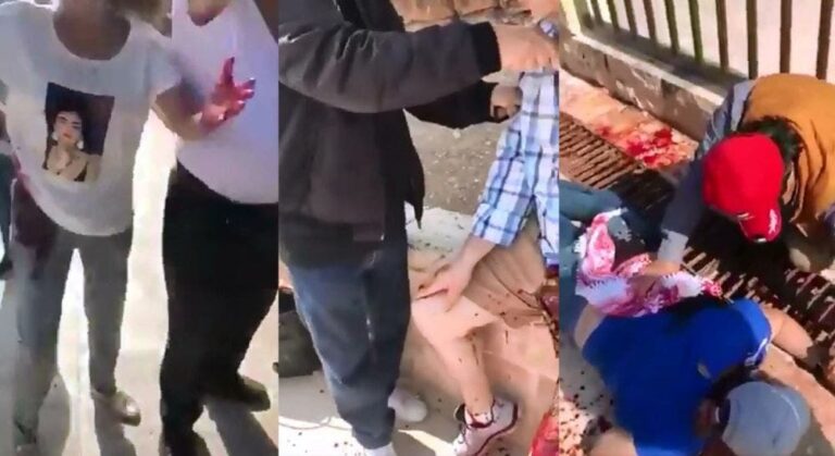 En un vídeo difundido en su momento en las redes sociales, se puede ver a una mujer tendida en el suelo bocabajo con una herida en la espalda, mientras que otro hombre aparece sentado con la camisa empapada de sangre, y hay muchas manchas de sangre alrededor de ellos, además de un gran revuelo.