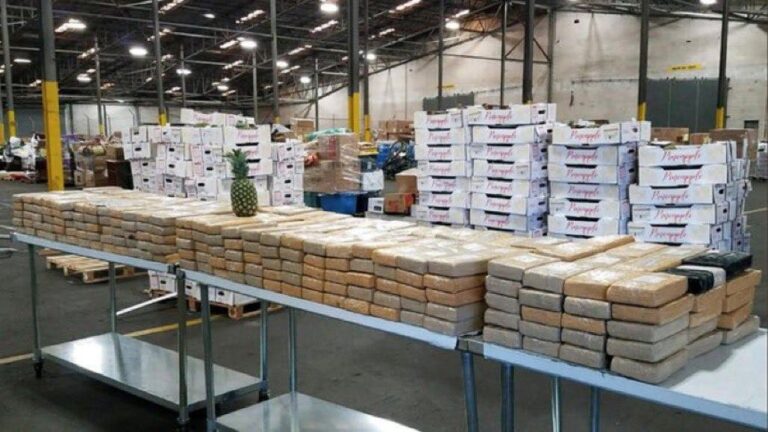 Estados Unidos.- Aduanas y Protección Fronteriza (CBP) anunció que la cocaína valorada en más de 19 millones dólares fue incautada en un embarque de un envío de piñas luego de que el cargamento intentara entrar al país.