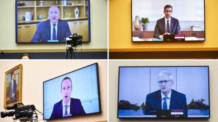 Congresistas de EU aseguran que Amazon, Apple, Facebook y Google tienen demasiado poder. Los CEO de Facebook, Mark Zuckerberg; de Amazon.com, Jeff Bezos; de Google, Sundar Pichai, y de Apple, Tim Cook, cuyas empresas representan juntas alrededor de 5 billones de dólares en valor de mercado, comparecieron por videoconferencia ante el panel antimonopolio de la Comisión de Justicia de la Cámara de Representantes.