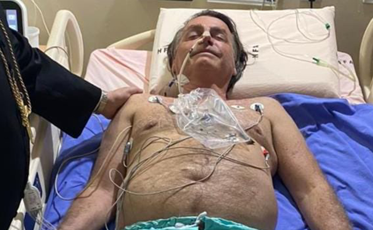 Asimismo, Bolsonaro publicó una foto de sí mismo sin camisa, con los ojos cerrados y acostado en una cama de hospital cubierta de sensores y cables. Junto a él, estaba lo que parecía ser un sacerdote con un crucifijo. Agradezco a todos por su apoyo y oraciones», escribió Bolsonaro.