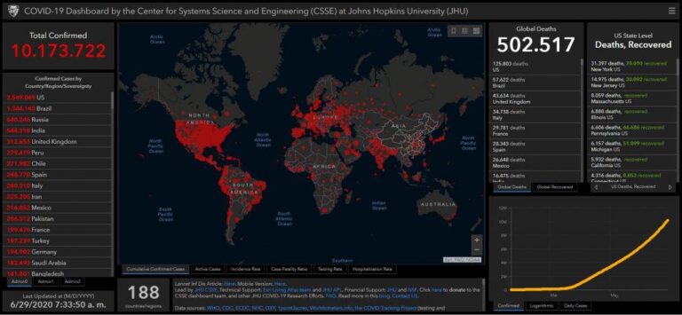 El número de muertos por coronavirus en todo el mundo se ha situado en 501 mil 940, según el recuento que ha hecho la Universidad John Hopkins y que figuran en su página web.