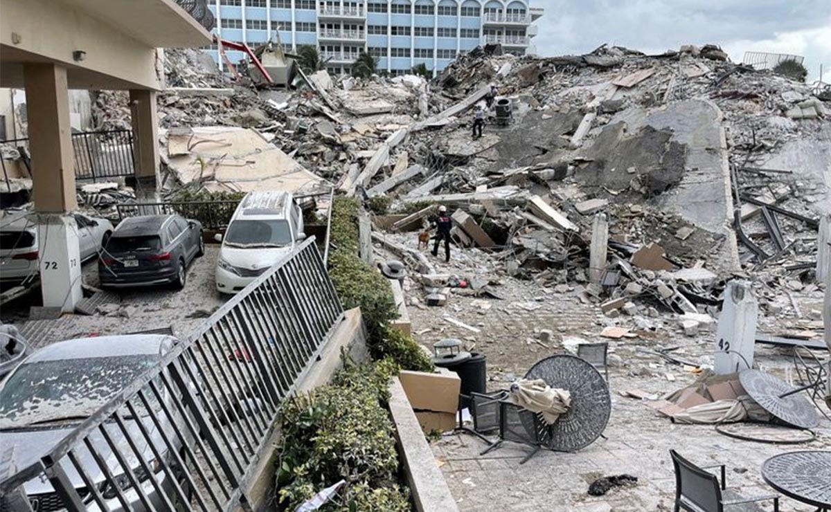 Cuatro personas han muerto y 159 siguen desparecidas tras el colapso de un edificio frente al mar cerca de Miami, hasta el momento los equipos de rescate revisan entre los escombros para buscar sobrevivientes.