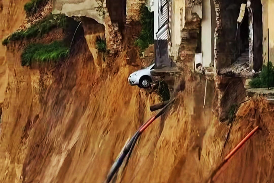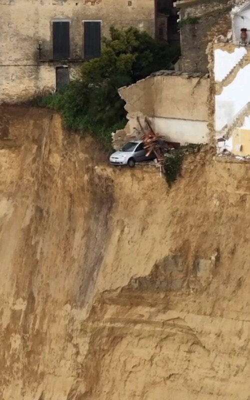 Un pueblo siciliano en Italia quedó literalmente al borde de un barranco luego de que un movimiento de tierra provocado por las fuertes precipitaciones registradas en los últimos días causó graves daños estructurales a la geografía donde se halla asentado obligando a la evacuación de un millar de ciudadanos.