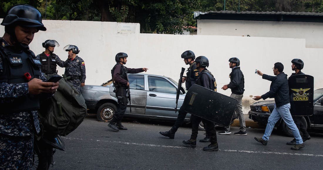 Algunas unidades de las fuerzas de seguridad venezolanas se encuentran en los alrededores de la unidad militar bloqueando las vías principales cercanas desde primeras horas del día.