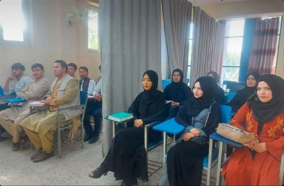 La vuelta a las clases en Afganistán ya refleja las consecuencias de la llegada al poder de los talibanes para la educación superior: una cortina divide a los estudiantes en una universidad privada del país asiático.