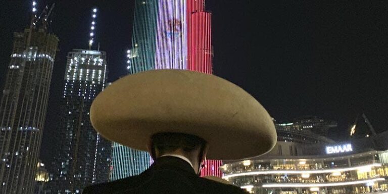 “Con motivo del 210 Aniversario de la #Independencia de #México y como gesto del excelente estado que guardan las relaciones entre nuestros países, el #BurjKhalifa se viste con los colores patrios”, escribió la embajada en una de las imágenes donde se ve proyectado en el edificio más alto del mundo el símbolo patrio.