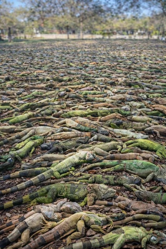 Los efectos de la inusual ola de frío debido a la reciente tormenta invernal han causado que miles de iguanas verdes en Florida entren en estado de sopor y caigan de los árboles lo cual está siendo aprovechado por las autoridades para capturarlas ya que se consideran una especie invasora.