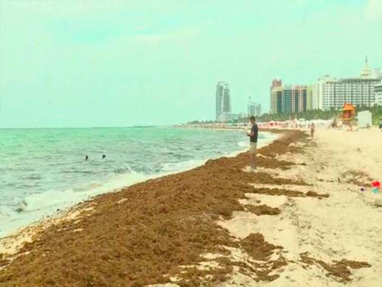 El sargazo inunda las populares playas de Miami .- En Miami, Estados Unidos el sargazo llegó para quedarse en sus populares playas, y es que este problema está afectando el turismo de esta ciudad, no obstante las autoridades ya planean combatir estás algas que están en la línea costera.