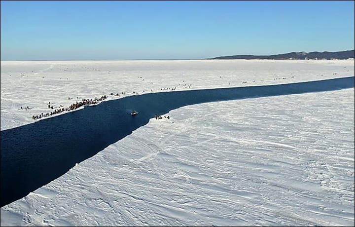 En Rusia rescatan a 536 pescadores de un témpano de hielo a la deriva