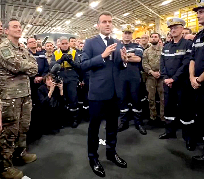 El mandatario quien también visitó a sus tropas en el portaviones Charles de Gaulle que navega hacia la zona del conflicto Foto: Captura de Pantalla Redes Sociales Emmanuel Macrón