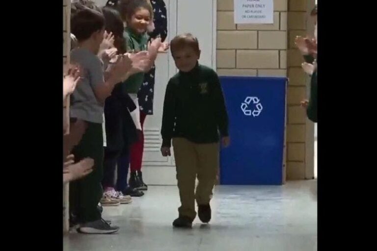 Amigos del héroe John Oliver, lo ovacionan al ser recibido en su colegio, momento sublime en la vida de cualquier ser humano, ellos con gran entusiasmo, entre aplausos y ovaciones acogen a su compañero al regresar del nosocomio, una verdadera fiesta en la escuela católica de St. Helen reciben entre vítores al niño de seis años de edad tras haber vencido al cáncer.