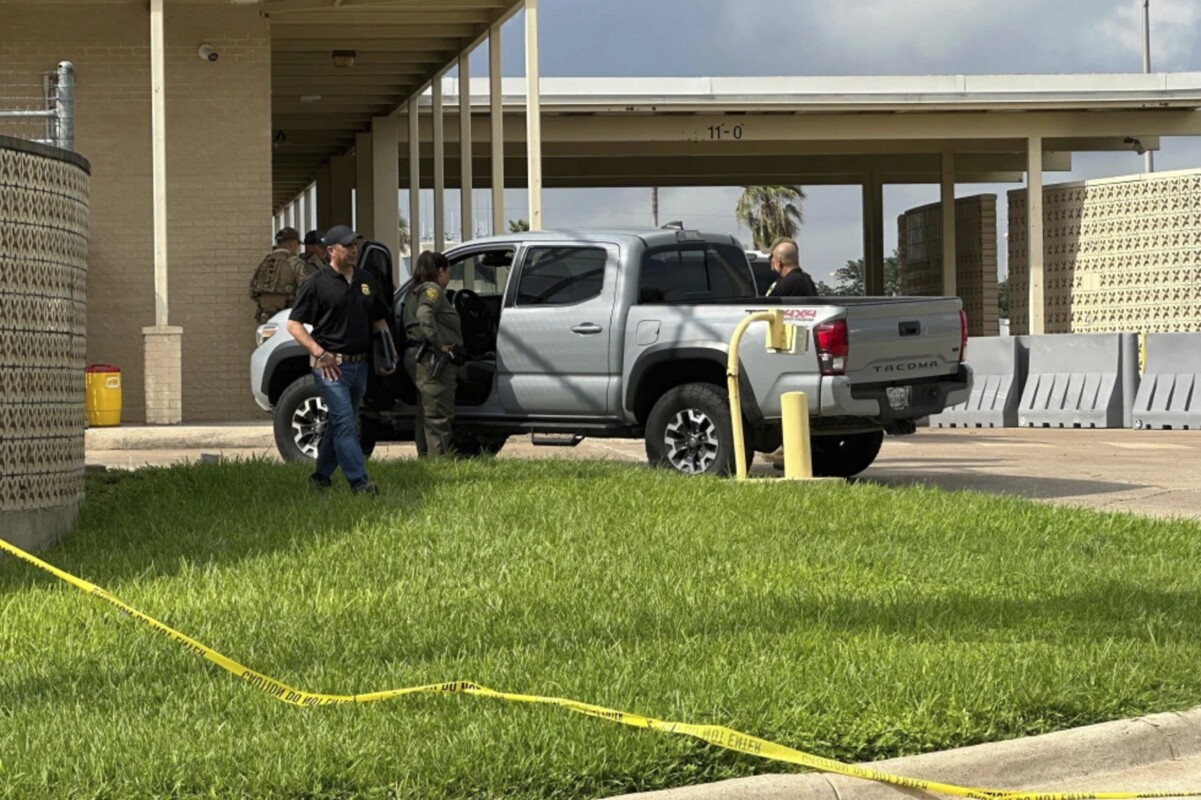 Agentes trabajan en la escena de un tiroteo en una instalación de la Patrulla Fronteriza en McAllen, Texas.