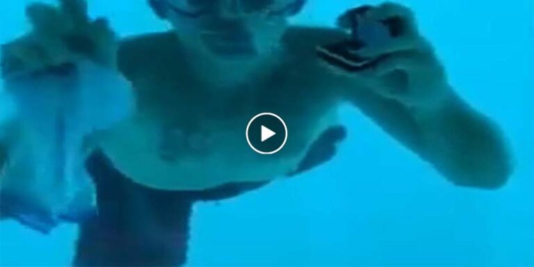 En la grabación se observa al hombre con unas gafas de piscina y un par de aletas.