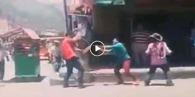 En el video se observa como los campesinos se enfrentaron con cuchillos ante la mirada de las personas que se encontraban en la calle de la ciudad colombiana de Cajamarca.