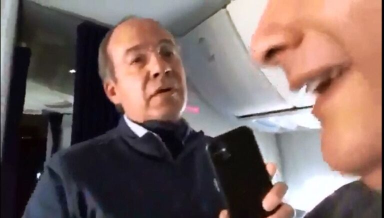 Una pareja encaró al ex Presidente Felipe Calderón Hinojosa durante un vuelo de Alemania a México para reclamarle por los errores cometidos durante su gestión y expresar su deseo de que sea sometido a un juicio político, a lo que el panista respondió destacando el crecimiento que logró el país durante su administración, además de decir al hombre que lo enfrentó que “no es mexicano”.