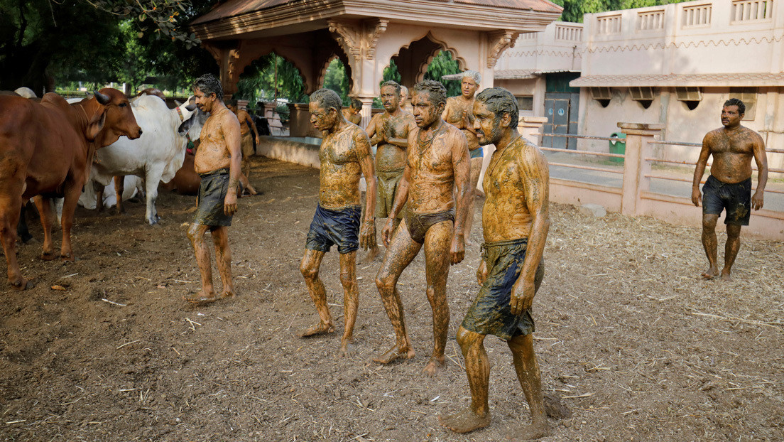 En ese contexto, en el estado indio de Gujarat, algunos creyentes acuden a refugios para vacas una vez a la semana para cubrir sus cuerpos con estiércol y orina con la esperanza de que esa mezcla fortalezca su inmunidad o les ayude a recuperarse del Covid-19.