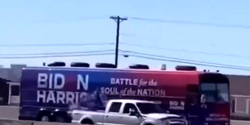 En las imágenes que fueron difundidas en redes sociales se observa una larga fila de vehículos con banderas de Trump, los cuales perseguían al autobús de campaña Biden- Harris para bloquearles el paso.