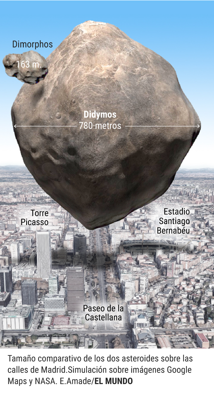 Para que el impacto sea efectivo, DART viajará a unos seis kilómetros por segundo, una velocidad “increíblemente rápida” y necesaria para que el choque altere “un poco” la trayectoria de Dimorphos, del tamaño del monumento a George Washington -un obelisco de 155 pies de altura (47.2 metros) situado en la capital de EU-, pero con mayor volumen, dijo Rodríguez.