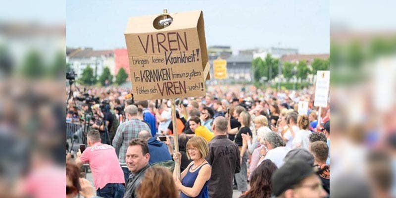 Y es que los protestantes acusan a los gobiernos y a los medios de comunicación de mentir sobre la pandemia de Covid-19, la cual según ellos no existe, pese a los millones de contagios que existen en el mundo y que han dejado claro que la única forma de cuidar la salud es siguiendo las medidas implementadas por los gobiernos para evitar contagiarse del terrible virus.