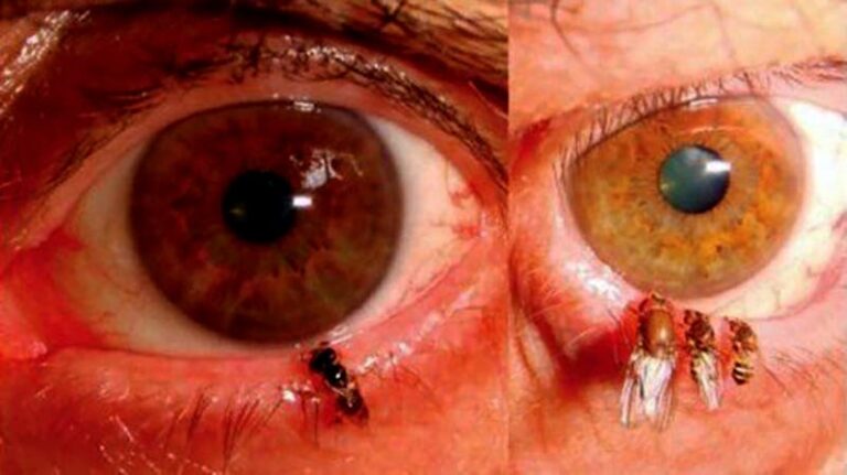 La fémina tenía en el ojo cuatro “abejas de sudor” (Halictidae), las cuales se alimentaban de sus lágrimas y tuvieron que sacarlas.