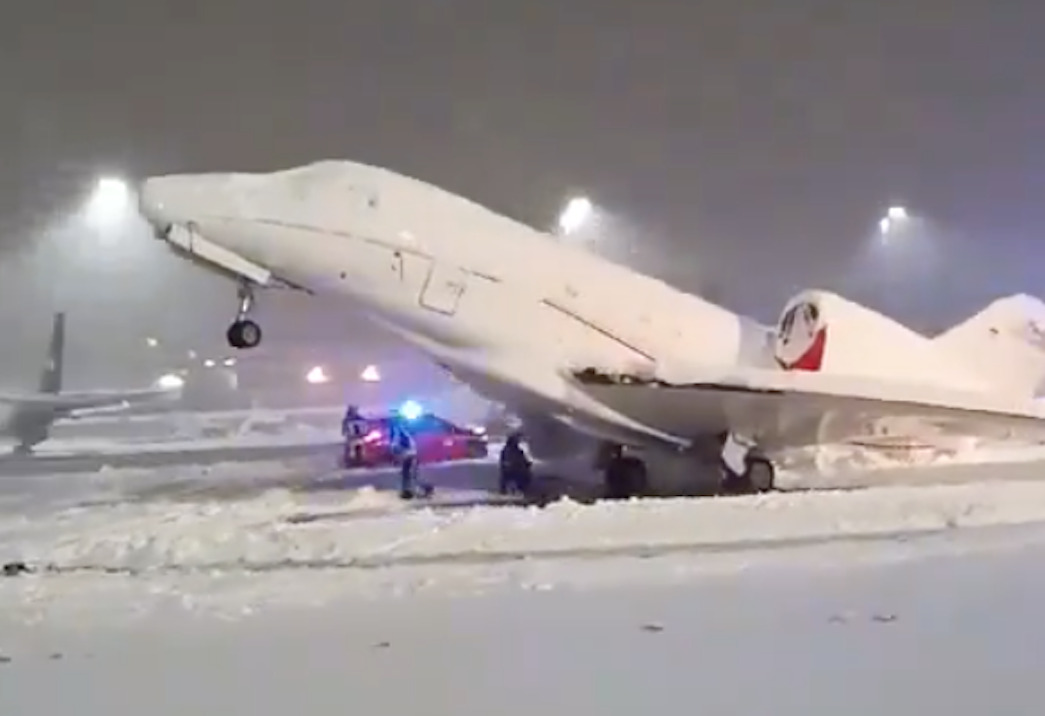 🇩🇪 | ÚLTIMA HORA: Aviones que se dirigían a la conferencia sobre el calentamiento global de Dubai quedaron congelados en la pista debido a las fuertes nevadas en Munich, Alemania.