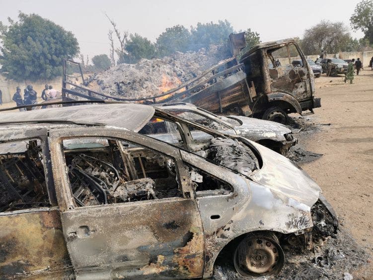 Un miembro de las milicias que colaboran con el ejército nigeriano para combatir a los yihadistas indicó que una treintena de vehículos fueron incendiados.