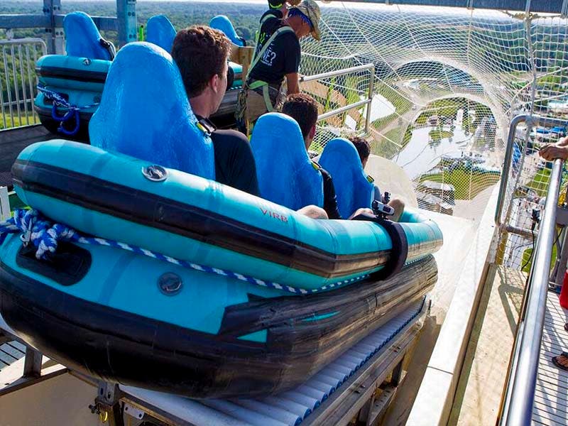 El tobogán era conocido como el Verreuckt, el cual significa demente en alemán, en el juego las personas se subían hasta 51 metros de altura para deslizarse en unas balsas que eran lanzadas hacia abajo a una velocidad de 112 km/hr para llegar a una piscina que amortiguaba la caída.