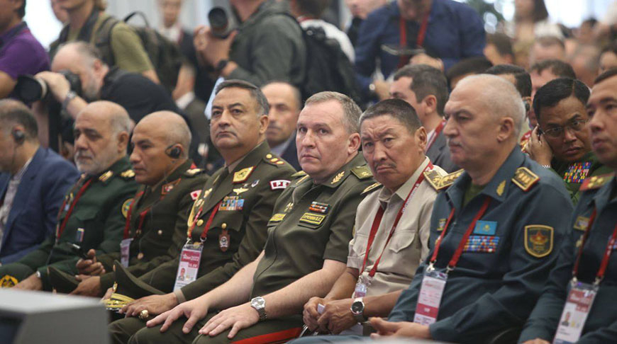 Acompañado del ministro de Defensa, Serguéi Shoigú, el mandatario ruso comentó al dirigirse a militares de diferentes países en el pabellón de exposiciones Patriot que “De esa forma, contribuyen a la defensa del mundo multipolar”.