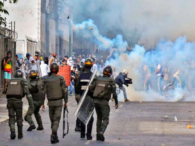 Agentes antimotines se enfrentaron contra los manifestantes en Caracas con bombas lacrimógenas y balas de goma, los choques se desataron cuando jóvenes bloquearon una avenida del barrio Altamira.