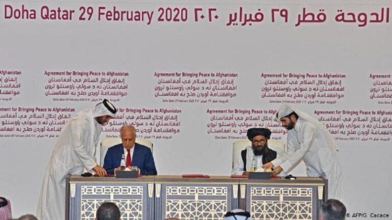 El pacto fue firmado por el representante especial de Estados Unidos para la paz Zalmay Khalilzad y el líder talibán mulá Abdul Ghani Baradar.