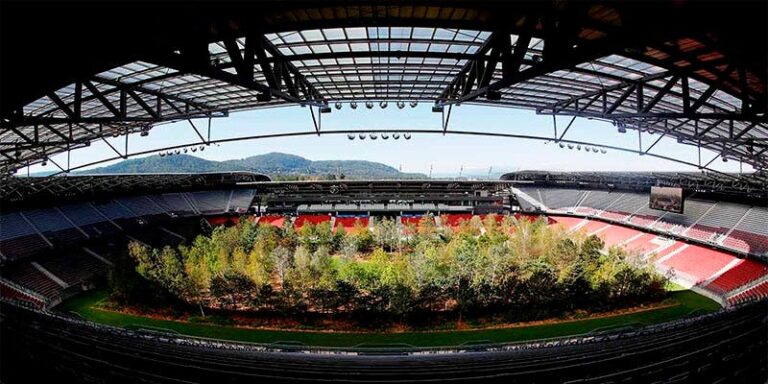 Plantan bosque en un estadio de Fútbol.- Trescientos árboles fueron plantados en medio de un estadio de Fútbol en Austria.
