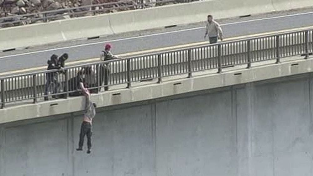De inmediato el oficial Andrew Long inició una conversación con el hombre suicida cerca de las 10 de la mañana cuando de pronto este se subió a reja y saltó, aunque Andrew logró agarrarlo del brazo y lo mantuvo suspendido durante al menos 30 segundos hasta que el agente del Sheriff de Calaveras, Jason Markovitz vino a ayudarlo a subir al hombre a tierra firme.