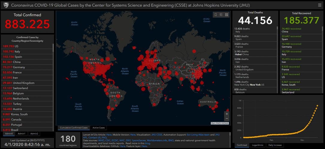 Estados Unidos registró hoy la mayor cantidad de contagios de Covid-19 en un solo día desde el inicio del brote, con 24 mil 971 nuevos casos de personas infectadas, de acuerdo con la universidad de medicina Johns Hopkins.