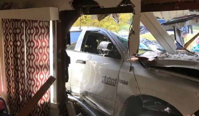 Sayville, Nueva York.- Afortunadamente un padre logró sacar a su hija de la camioneta, momentos antes de que le cayera un espectacular encima al vehículo.