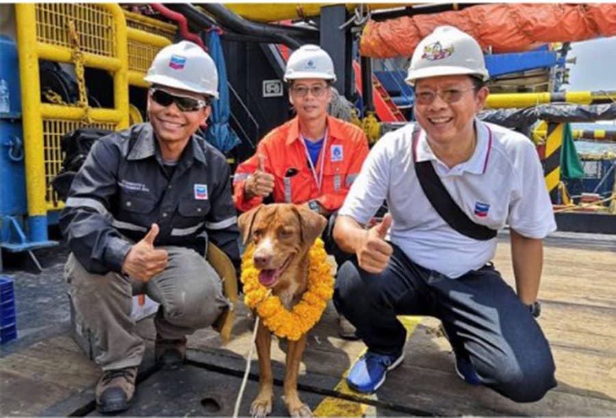 Luego, un barco que transporta víveres y agua a la instalación de crudo trasladó al perro a la provincia de Songkhla, en el sur de Tailandia.